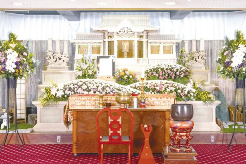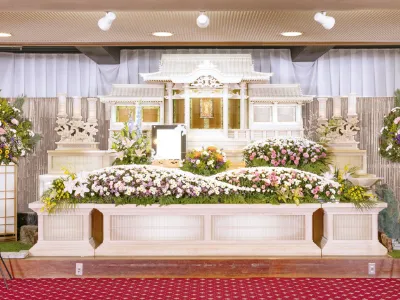 式場の白木高級祭壇(又はこれに準ずる祭壇)を使用し、儀式を行います。祭壇に生花による装飾を行います。