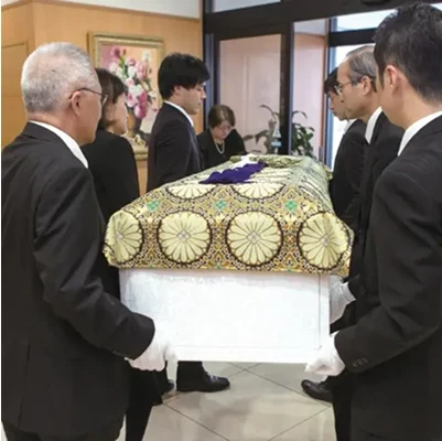 故人様をお棺に収める納棺の儀を行います。ご出棺に備え、ご遺族立会いのもと、お布団からお棺へ故人様をお納めいたします。