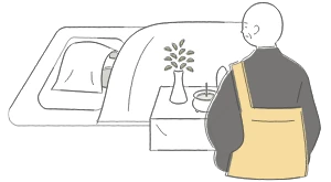 ご自宅に故人様をお連れし、お布団に寝かせ、お参りの準備を整えさせて頂きます。お線香もご準備いたしますので、ご親族等にご面会いただくことも可能です。